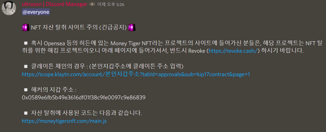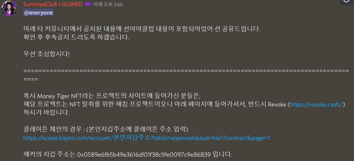 클레이튼 스캠인 Money Tiger가 사람들에게 알려졌다.