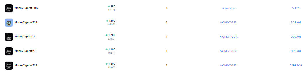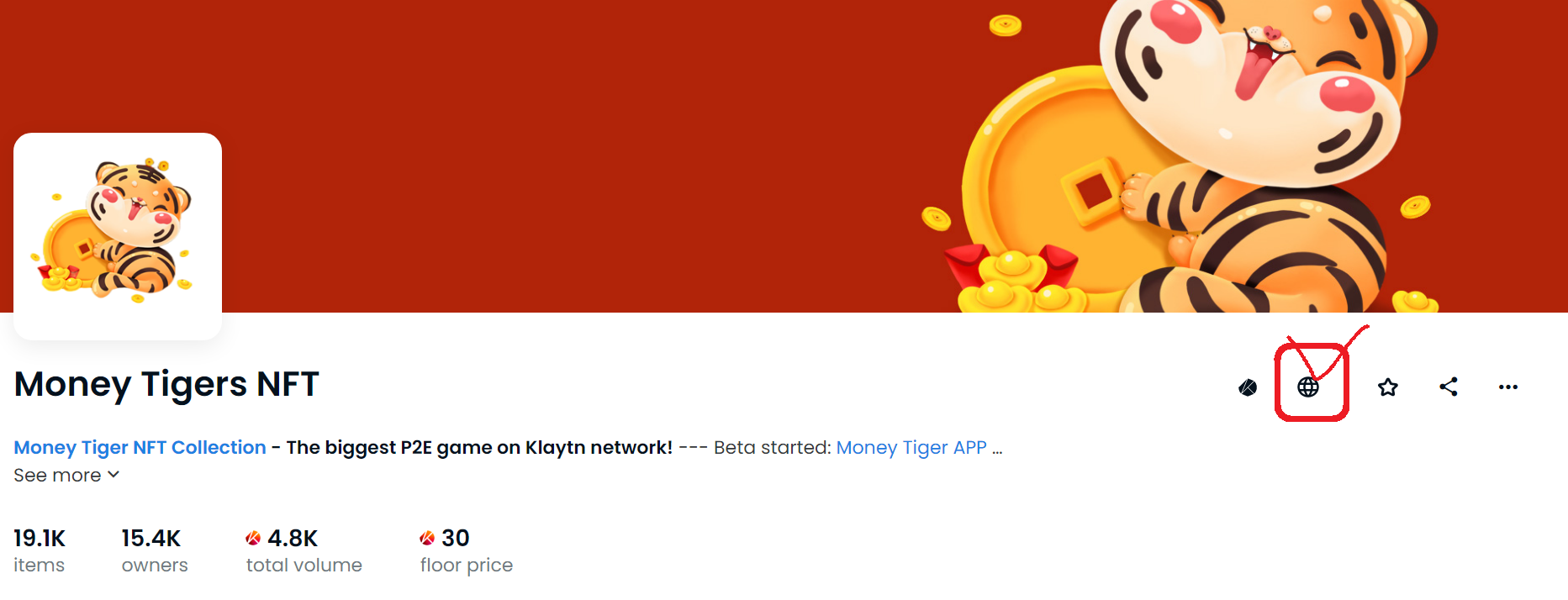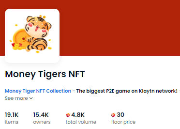 현재, 나의 디센트에도 들어있는 호랑이 모양의 NFT, Money Tiger는 총 19,149 개가 배포된 클레이튼 스캠 NFT이다.