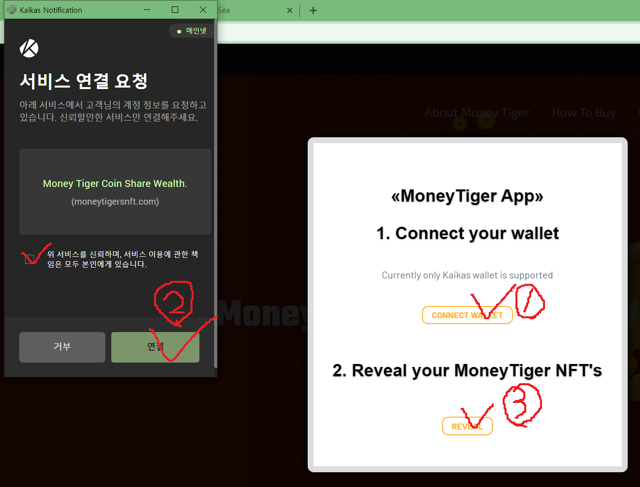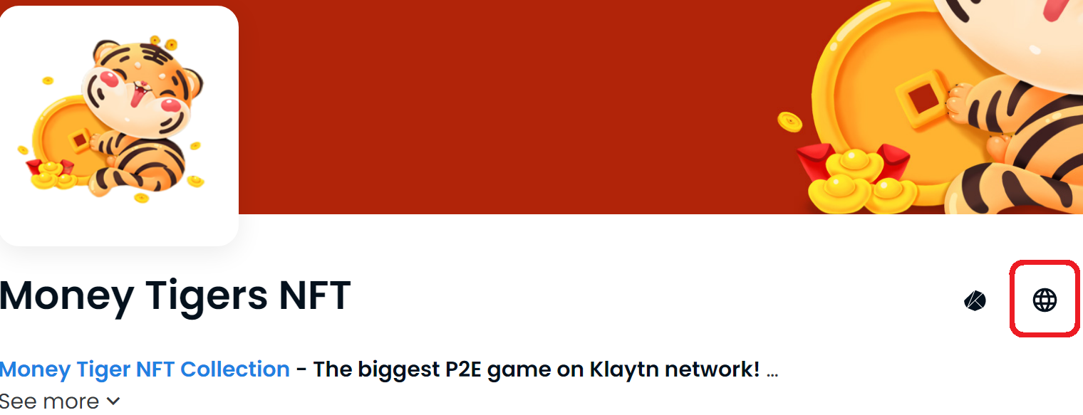 오픈씨에 있는 홈페이지를 클릭하면 Money Tiger 홈페이지가 나온다.