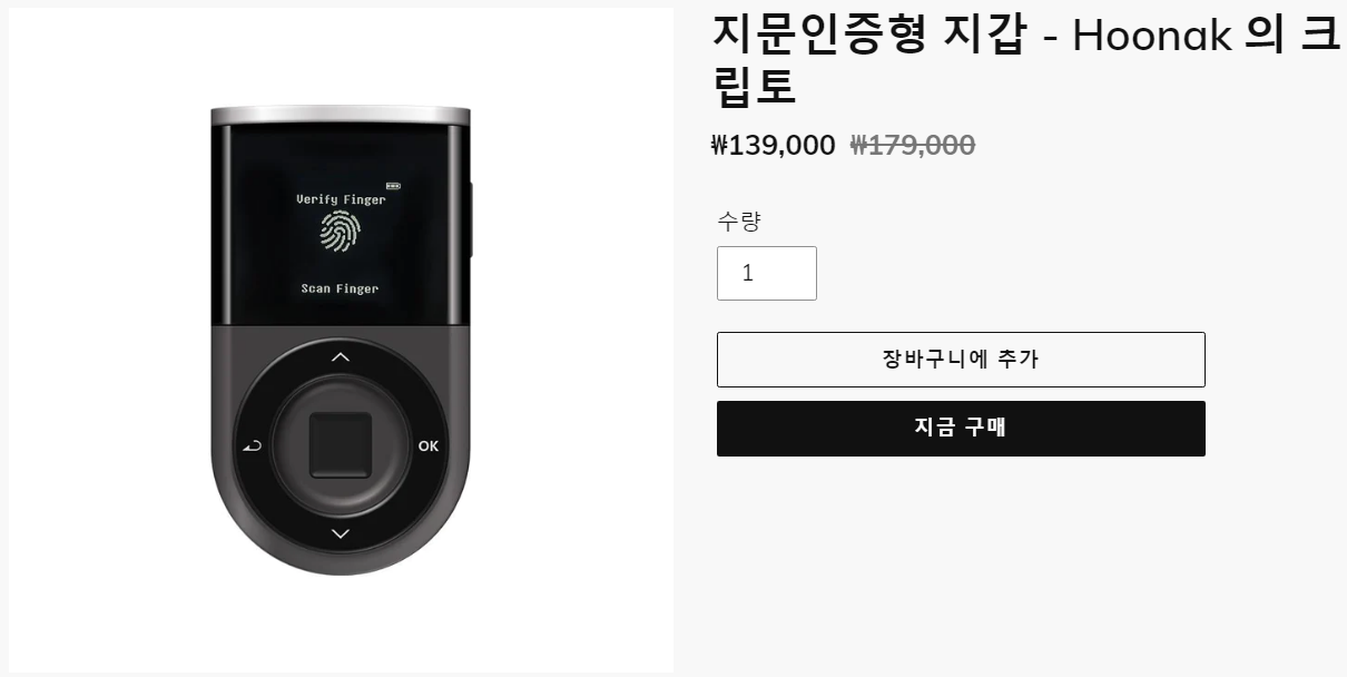 지문인증형 지갑 - Hoonak 의 크립토 - 디센트 하드웨어 지갑