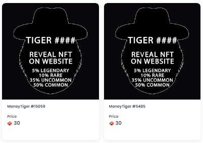 Money Tiger는 리빌 전 이미지를 배포하여서 사람들의 호기심을 자극하고, 리빌 후 이미지의 가격을 높게 설정으로써 사람들에게 리빌하도록 유도한 것으로 보인다.
