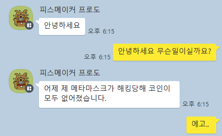 "메타마스크가 해킹당했습니다. BTC 마인트릭스를 무사히 구출해 주세요!"