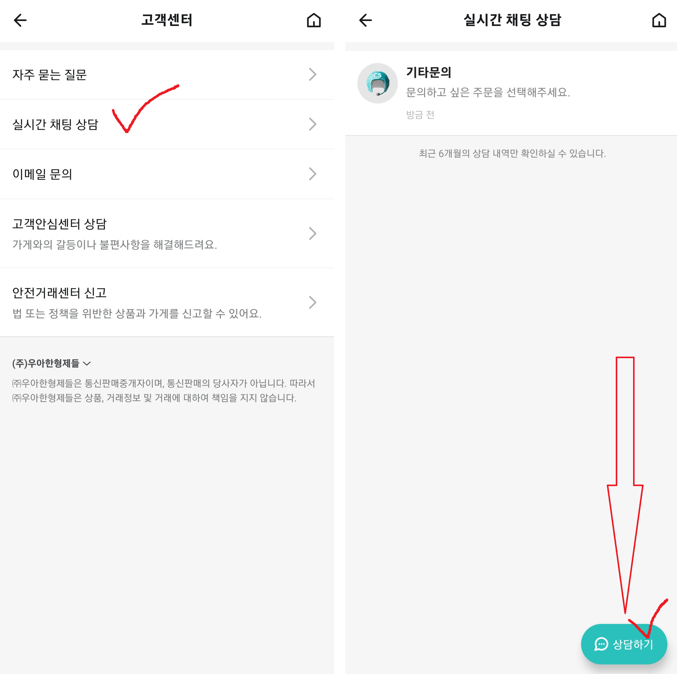 - 스크롤을 쭈욱 내려서 고객센터 클릭