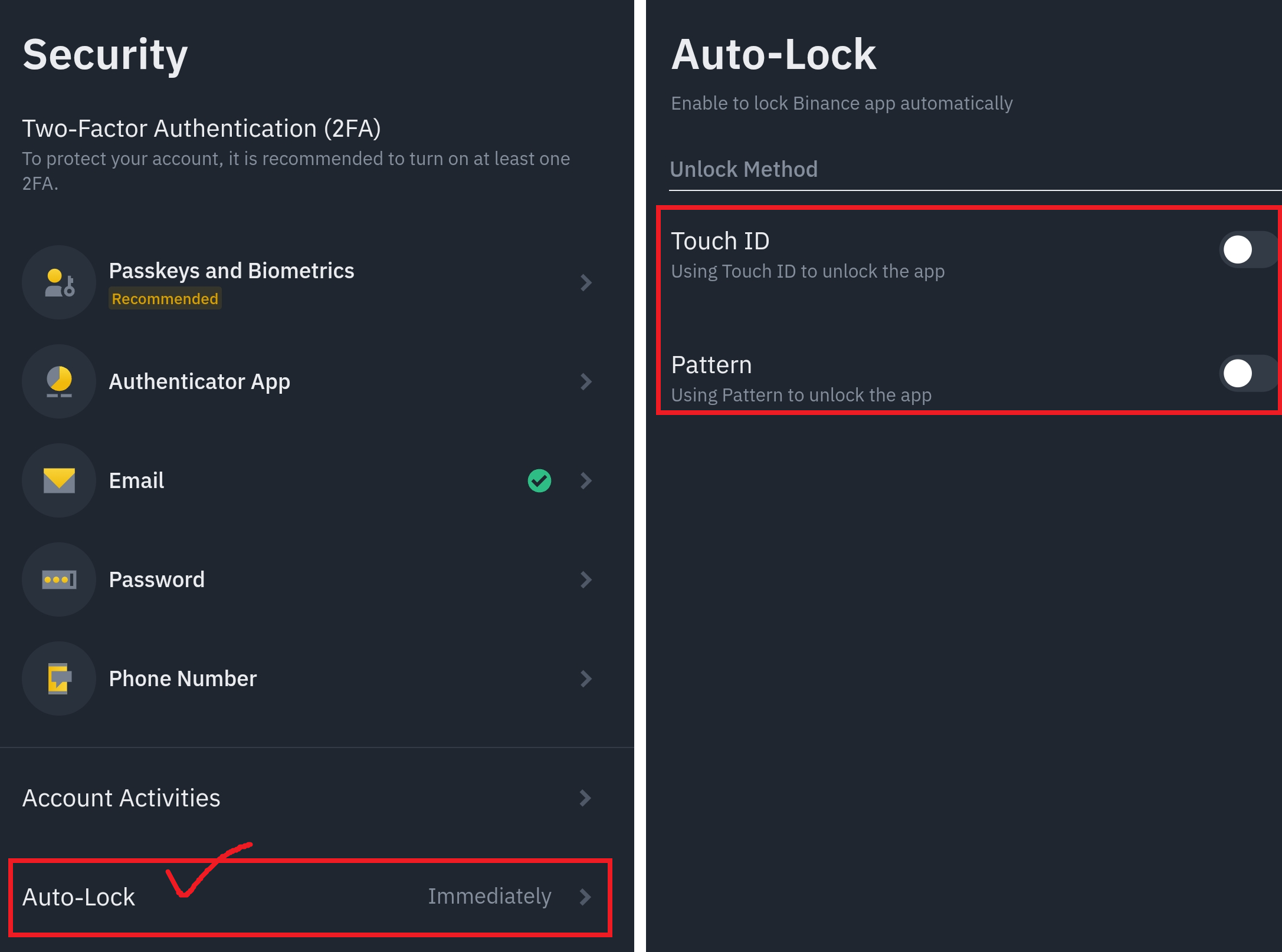 바이낸스 앱, 로그인 잠금화면 만드는 방법