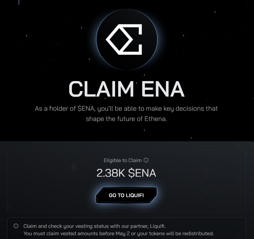 "4월 2일 오후 4시부터 ENA 에어드랍을 클레임 할 수 있습니다."