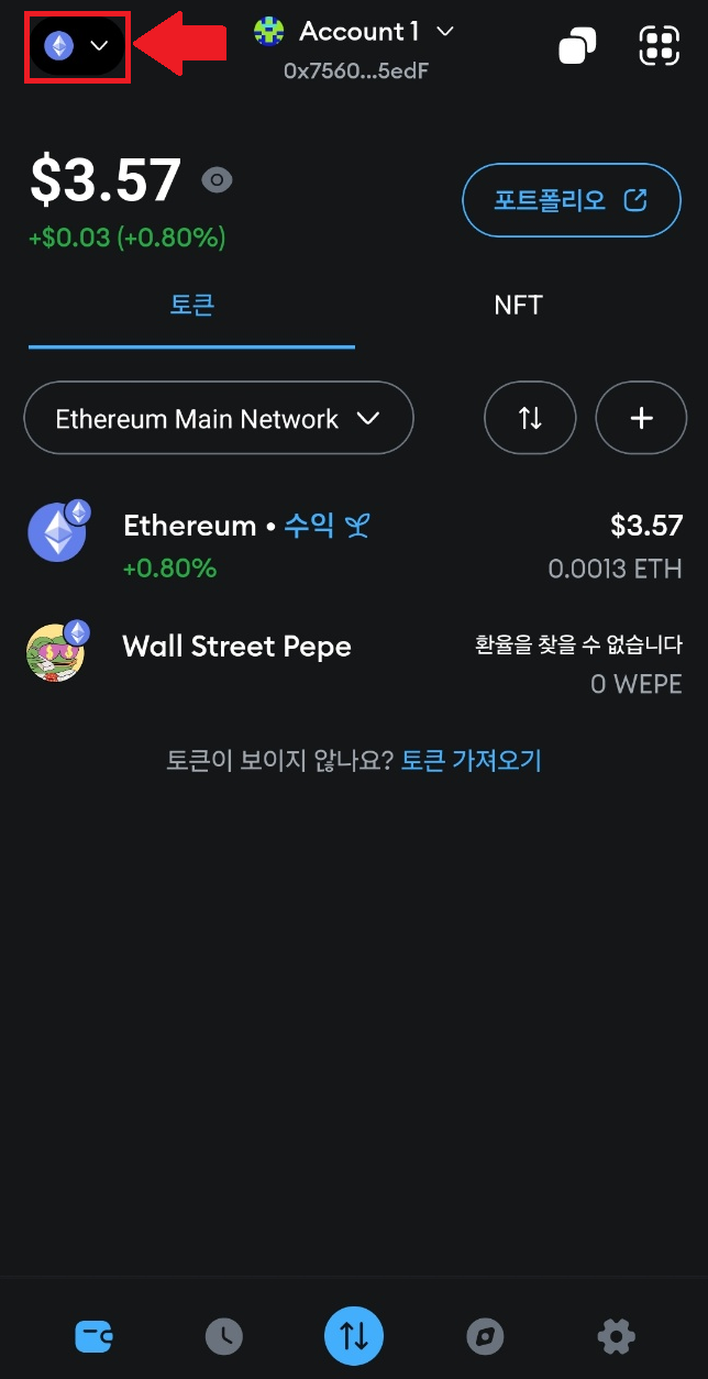 - 좌측 상단의 이더리움 코인 모양 클릭