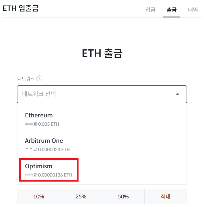 빗썸 이용자분들 중 메타마스크를 처음 사용하는 분들은 수수료를 싸게 ETH를 전송하기 위해 optimism 네트워크를 선택하고 메타마스크로 코인을 전송하시는 경우가 종종 있다. 당연히 아무리 기다려도 메타마스크로 보낸 ETH는 보이지 않는다.