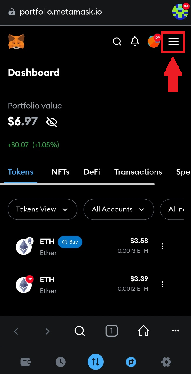 이렇게 하면, 메타마스크로 보낸 다른 네트워크(ex. OP네트워크)의 ETH가 보일 것이다. 이제는 이 OP 네트워크의 ETH를 원래 사용 목적이었던 이더리움 네트워크의 ETH로 변환하는 방법을 알아보자.