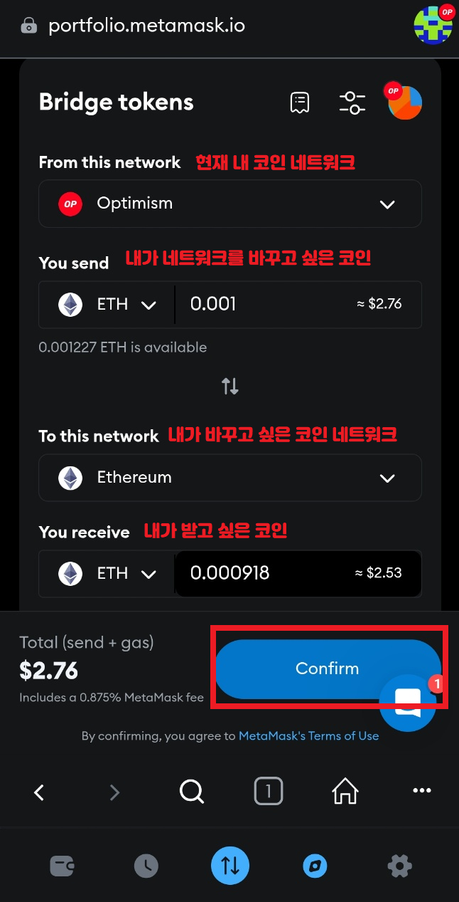 [모바일 메타마스크] 코인(ETH) 네트워크를 변경하는 '메타마스크 브릿지' 이용하는 방법
