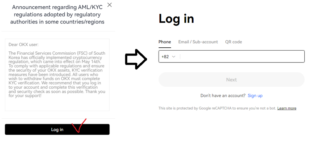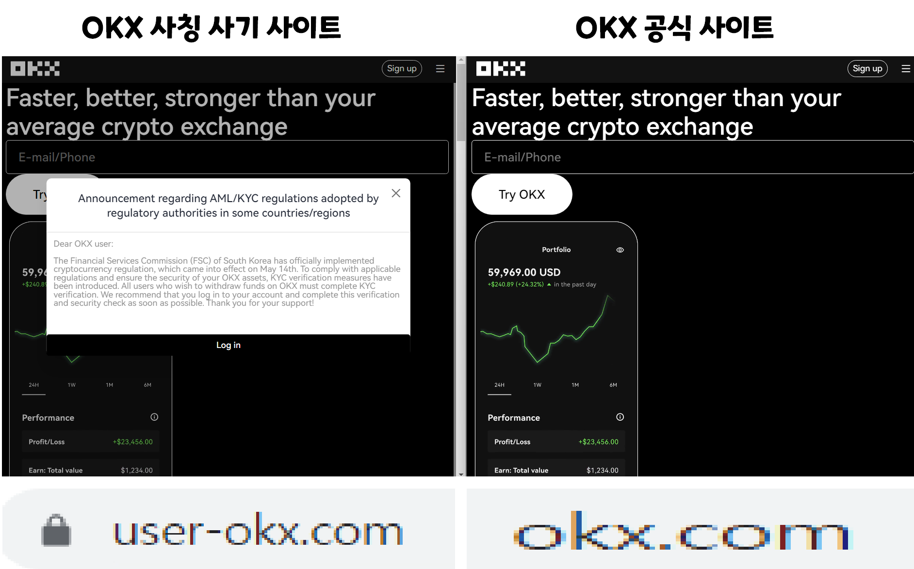 최근 업비트, 빗썸등 여러 국내 가상화폐거래소에서 '고객확인 재이행 안내'를 하고 있는데, 언뜻보면 OKX에서 온 문자도 그런 고객확인 재이행 제도와 비슷한 취지로 받아들여 아무 의심없이 해당 사이트에 접속하여 KYC인증을 할 수 있다. (인증 기간이 얼마 남지 않아 초조한 마음에 자신도 모르게 인증을 진행할 수도 있다.)