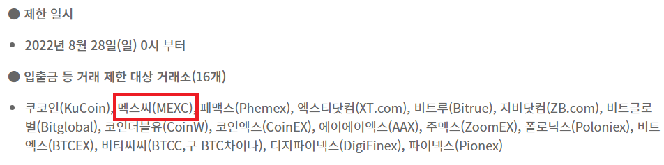 작년에 MEXC를 포함하여 총 18곳이 특금법 위반 해외거래소로 지정되면서 해당 거래소를 사용하는 많은 분들이 국내거래소로 바로 보내는 실수를 일으켰다.