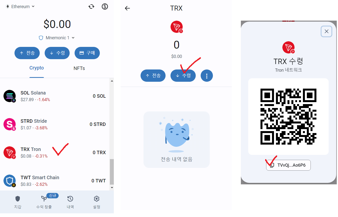 ※ 트러스트 월렛 트론 입금주소 보는 방법