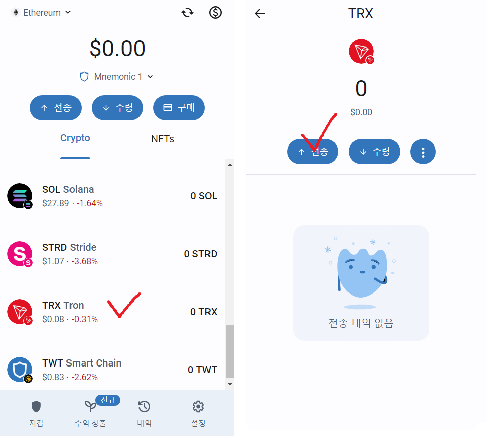 - TRX 우측 출금 클릭