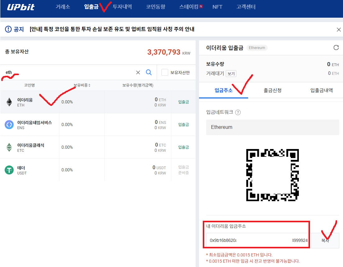 ☆업비트 ETH 최소입금금액은 0.0015 ETH이다.