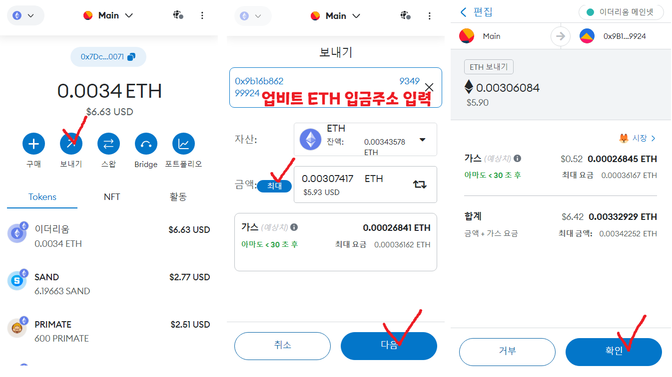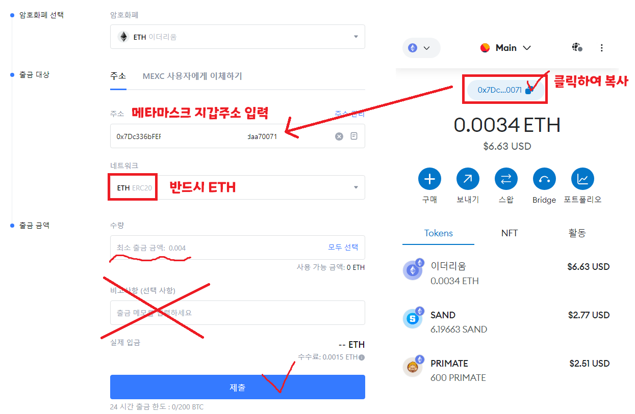 - MEXC -> 개인지갑(ex. 메타마스크, 트러스트월렛) -> 국내거래소