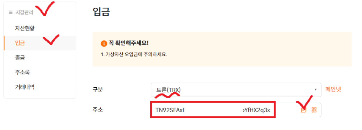 - 국내거래소(업비트, 빗썸, 코인원, 코빗) 입금주소 입력