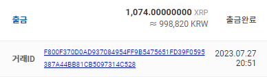 다행히, 업비트에 제출한 확인서가 인정받아 정상적으로 리플을 출금할 수 있었다.