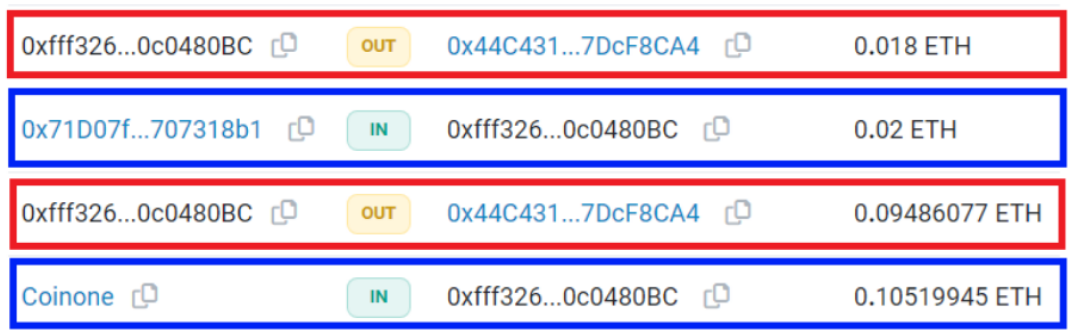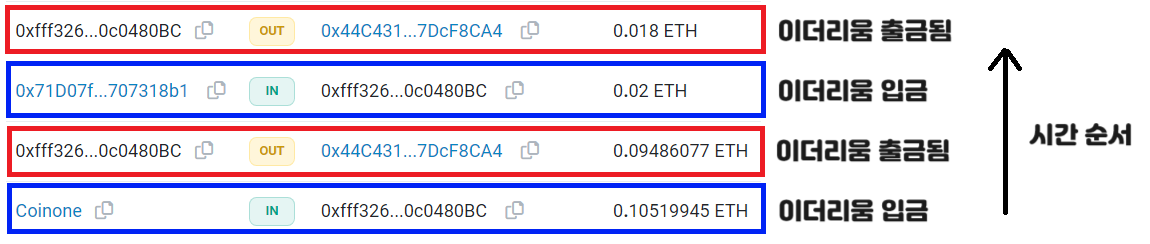 그렇게, 피해자가 이더리움을 넣게 되면 계속 지갑을 감시하고 있던 스위퍼봇이 작동하여, 피해자가 넣은 이더리움은 바로 해커 지갑으로 보내진다. 기록상은 12초(이더리움 1 block)지만, 기록만 그런 것이지 들어오자마자 빠져나간 것이라 봐야 한다.