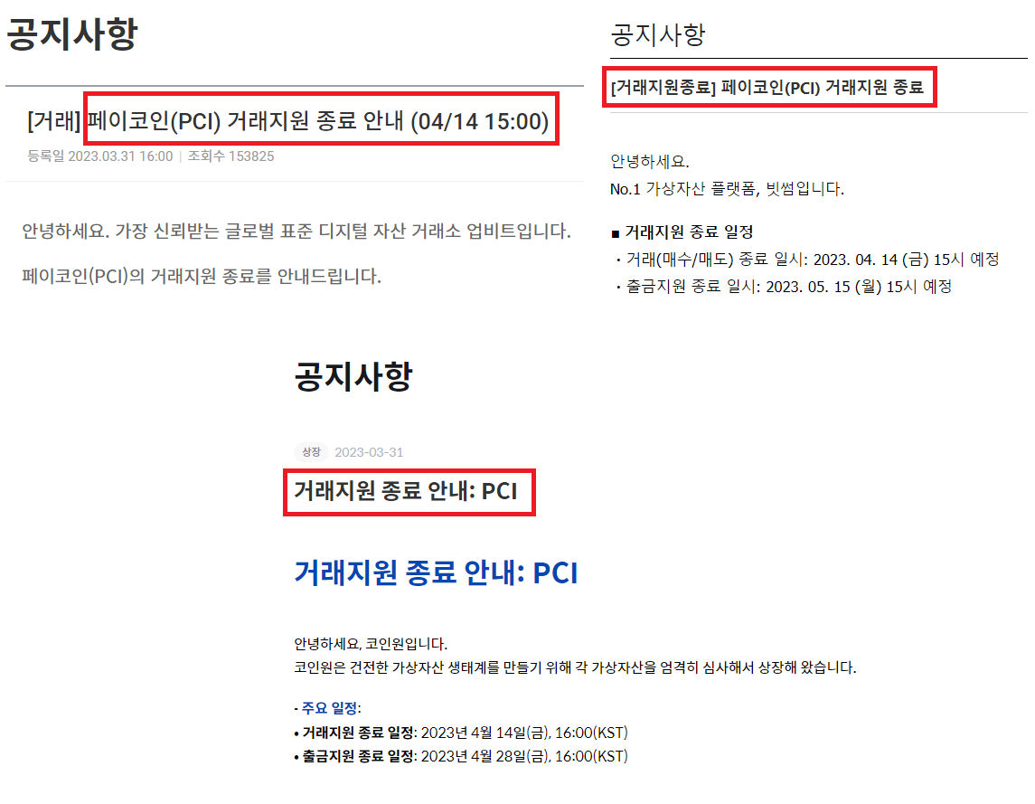 3월 31일, 페이코인을 상장하고 있던 업비트, 빗썸, 코인원은 공식적으로 페이코인 상장폐지 공지를 올렸고 이는 4월 14일에 시행된다. 4월 14일 이후에는 더 이상 국내거래소에서 거래가 되지 않기 때문에 페이코인 보유자들은 4월 14일 이전에 페이코인을 매도하던가 아니면, *출금 가능 기한까지는 꼭 페이코인을 외부로 옮겨야 한다.