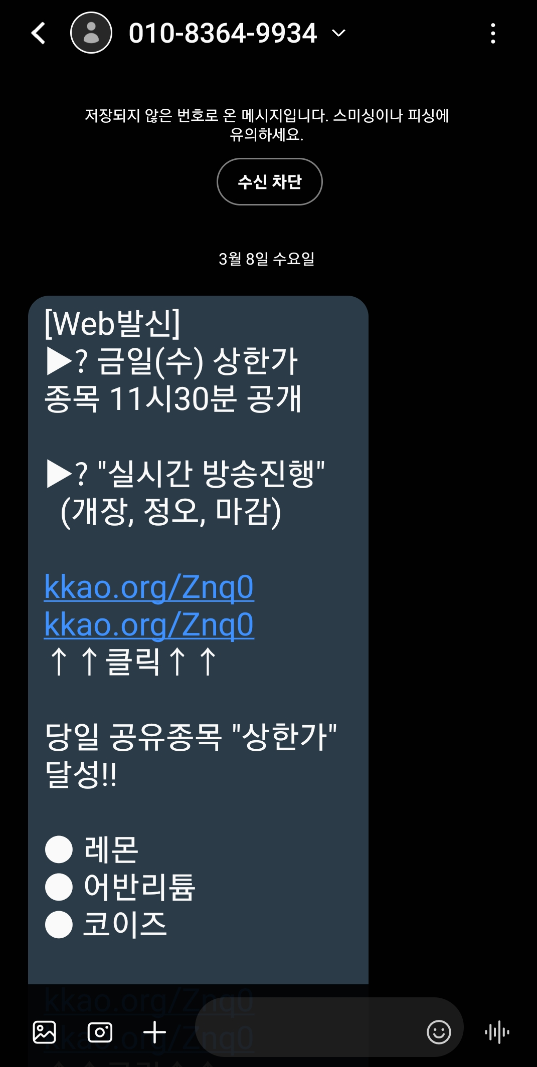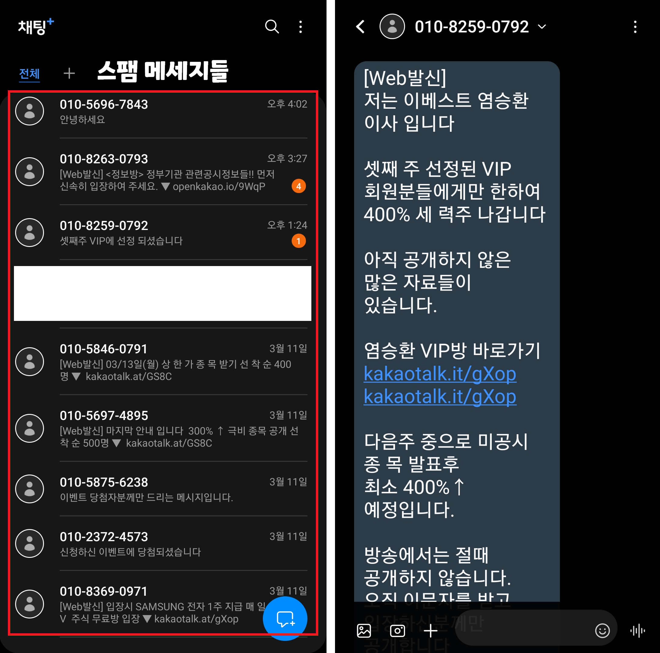 "최근 개인정보 유출 사건 탓인지 스팸 문자가 끊이질 않아.."