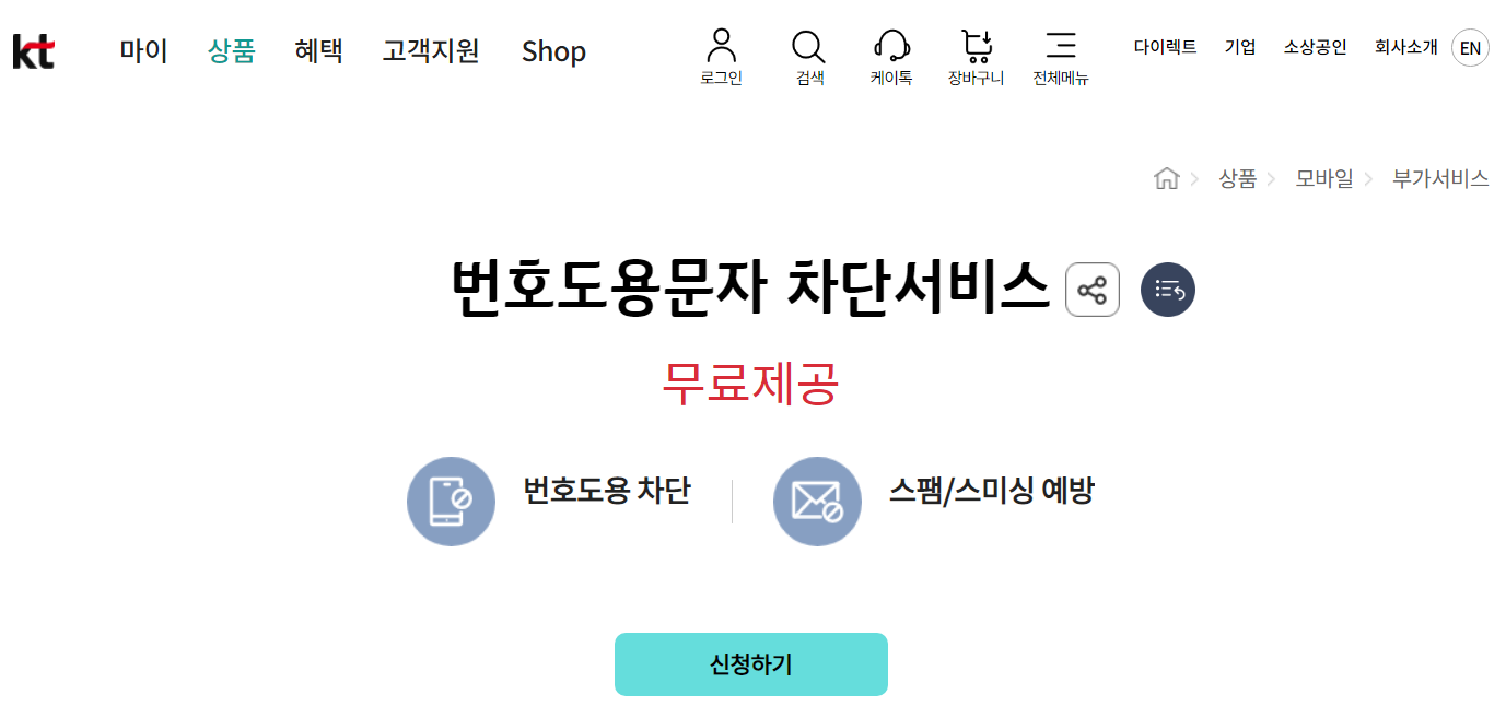 [번호도용문자차단] 무료로 스팸, 스미싱 문자 차단하는 SKT,KT,LG U+ 통신사 서비스